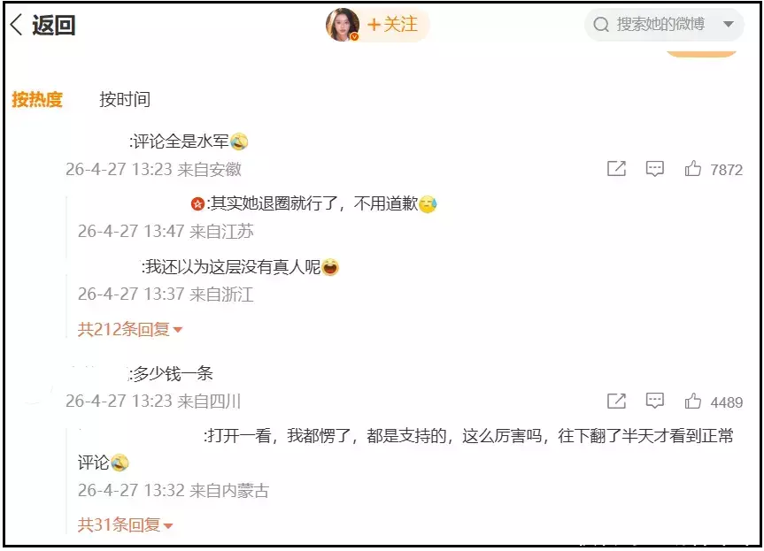 至于黄杨钿甜到底有没有找水军洗白,这里就不断言了,上一张黄杨钿甜社媒评论区截图,大家自行感受吧。